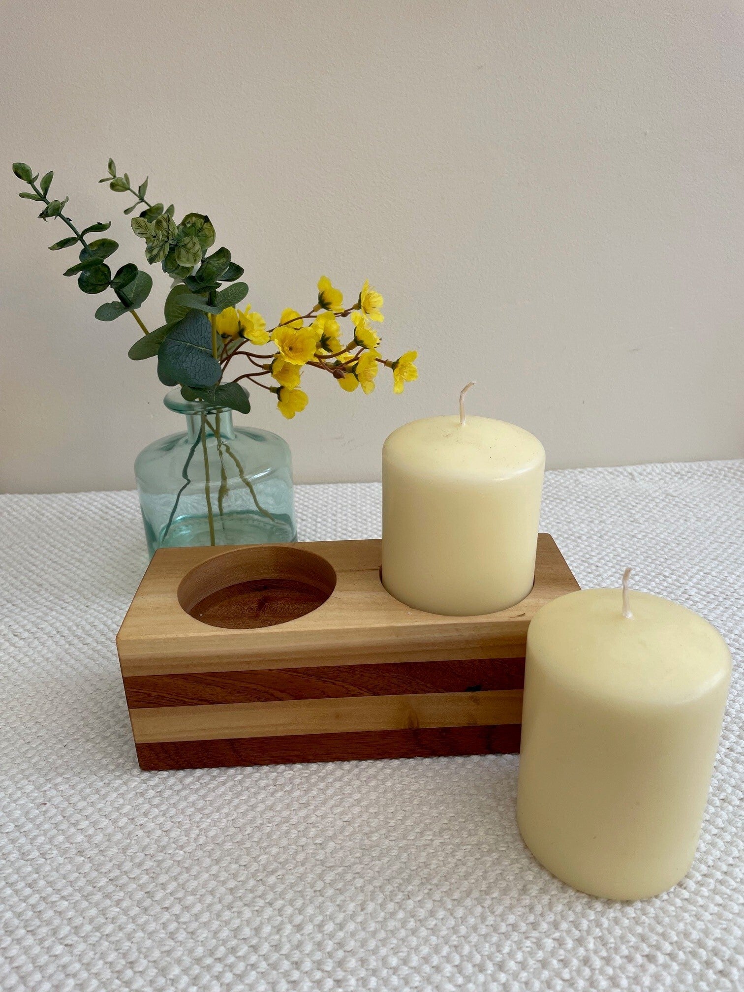 Double Candle Holder with Candles (as shown), with pre drilled match holder